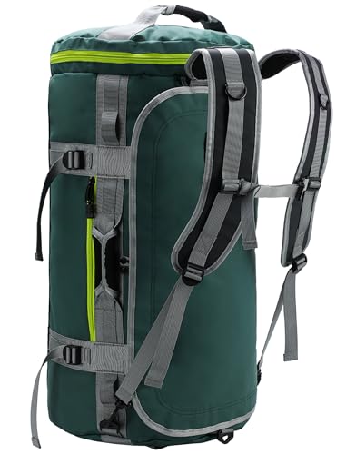 MIER Large Duffel Backpack Sports Gym Bag with Shoe Compartment, Heavy Duty and Water Resistant, Green, 60L