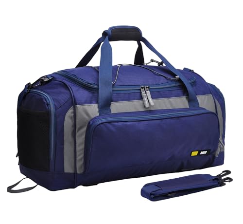 MIER Herr Holdall stora gymväskor för män sport duffelväska med skofack för helgen övernattning handbagage på resor, 60 L (marinblå)