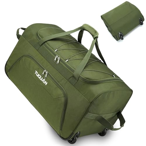 TUGUAN Vikbar duffelväska med hjul, 110 l rullbar sportväska, Färg: grön, 71 cm, resor, camping, vandring, shopping, sport, gym, förvaring