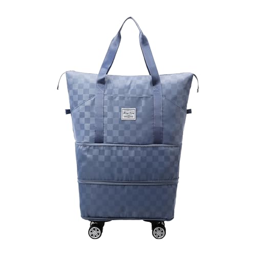FEEIMOL duffelväska med hjul resväska handbagage med hjul och handväska vikbar bagageväska, BLÅ, 50x26x32 cm