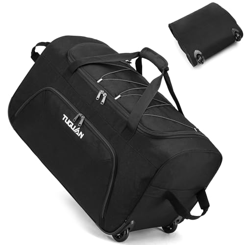 TUGUAN Hopfällbar duffelväska med hjul, 110 l, vikbar elastisk reseduffelväska för resor och camping, 28 tum, Svart, 28 Inch, Resor, camping, vandring, shopping, sport, gym, förvaring