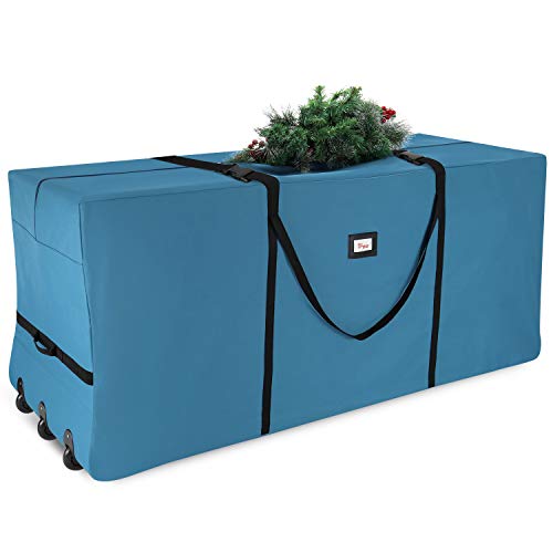 Hearth & Harbor Passar upp till 2,7 m. Konstgjorda demonterade träd, hållbara handtag och hjul för enkel transport & transportera-rivsäker Oxford duffelväska, 600D polyester, stålblå, L