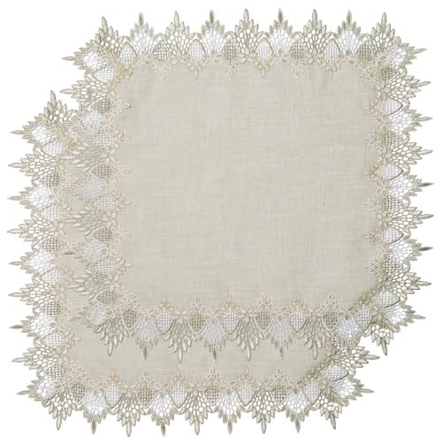 URROMA 2 st fyrkantig duk i linne, 24 x 24 tum, beige bordsskydd med spetskant, soffbord, dekoration, bordsduk, för matsal kök (60 x 60 cm)