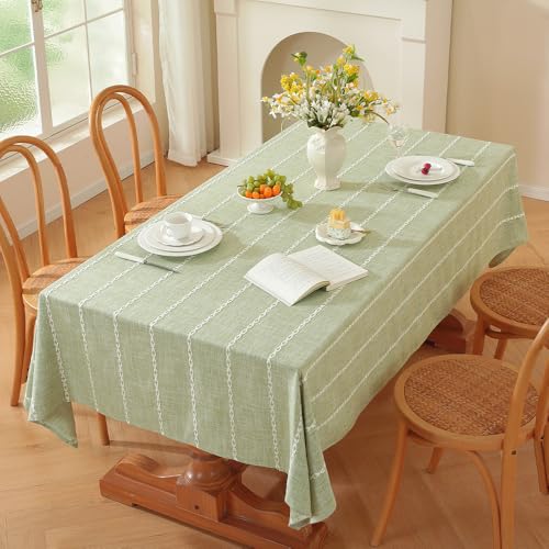 Zobesta Salviagrön duk i linne och bomull, för rektangulära bord, kraftig och tvättbar boho-inspirerad lantlig duk för kök och bordstextilier (salviagrön, 135 × 178 cm)
