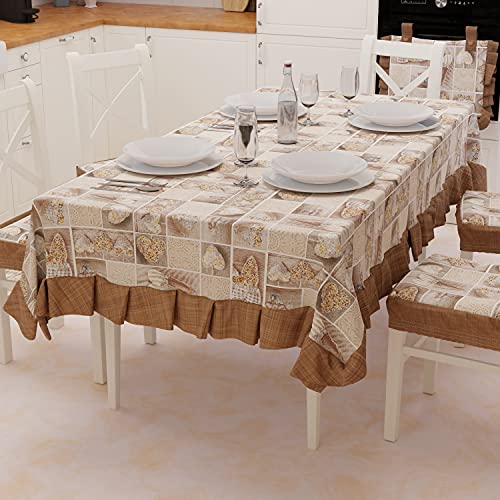 PETTI Artigiani Italienska - Duk, Plastifierat bordsöverdrag med volant, Bordsöverdrag Utomhus Vattentät Bomull Design Lidia Brun X6-sits (140 x 180 cm) 100% Made in Italy