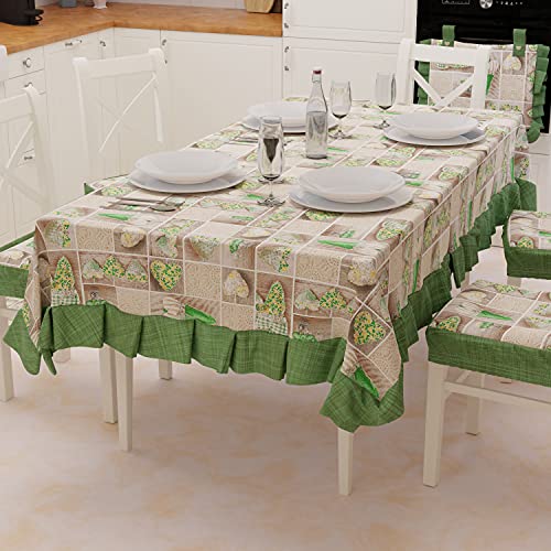 PETTI Artigiani Italienska - Duk, Plastifierat bordsöverdrag med volant, Bordsöverdrag Utomhus Vattentät Bomull Design Lidia Grön X12-sits (140 x 240 cm) 100% Made in Italy