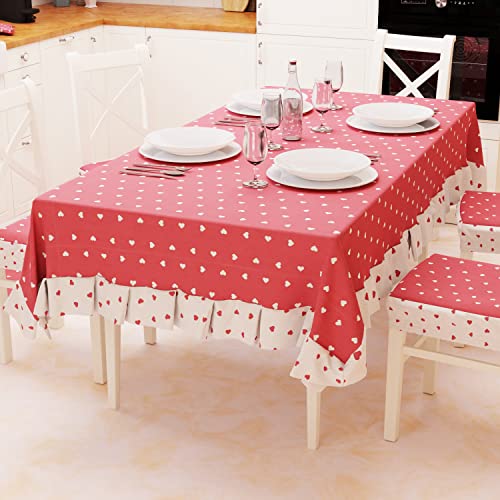 PETTI Artigiani Italienska - Duk, Plastifierat bordsöverdrag med volant, Bordsöverdrag Utomhus Vattentät Bomull Design Hjärtan Röd X6-sits (140 x 180 cm) 100% Made in Italy