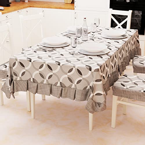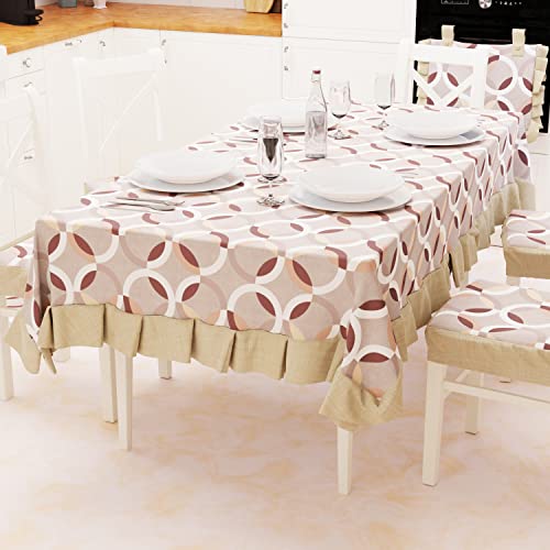 PETTI Artigiani Italienska - Duk, Plastifierat bordsöverdrag med volant, Bordsöverdrag Utomhus Vattentät Bomull Design Circel Beige X12-sits (140 x 240 cm) 100% Made in Italy
