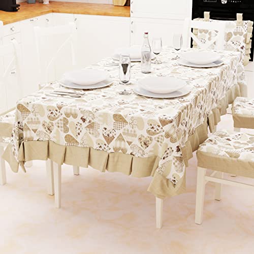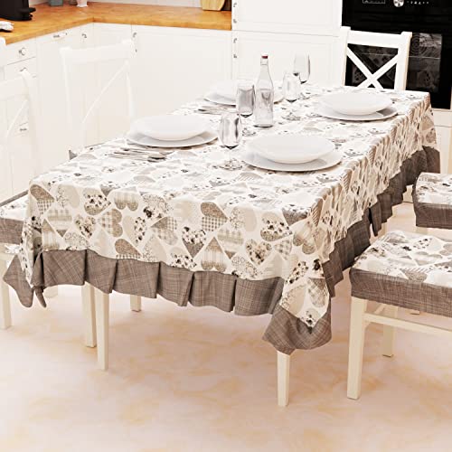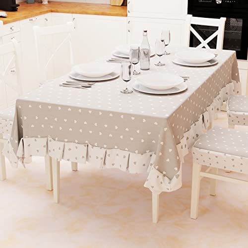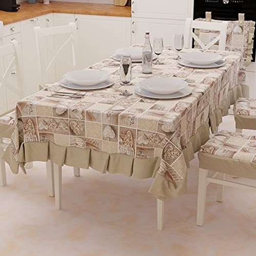 PETTI Artigiani Italienska - Duk, Plastifierat bordsöverdrag med volant, Bordsöverdrag Utomhus Vattentät Bomull Design Hjärtan Beige X12-sits (140 x 240 cm) 100% Made in Italy