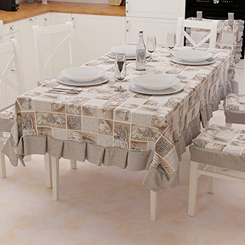 PETTI Artigiani Italienska - Duk, Plastifierat bordsöverdrag med volant, Bordsöverdrag Utomhus Vattentät Bomull Design Lidia Beige X12-sits (140 x 240 cm) 100% Made in Italy