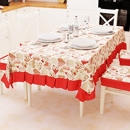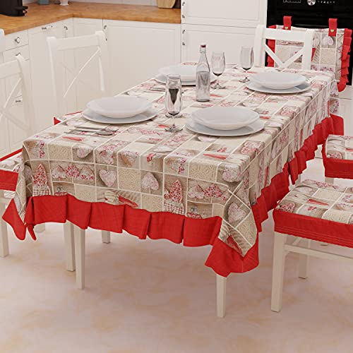 PETTI Artigiani Italienska - Duk, Plastifierat bordsöverdrag med volant, Bordsöverdrag Utomhus Vattentät Bomull Design Hjärtan Röd X12-sits (140 x 240 cm) 100% Made in Italy