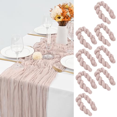 8 stycken ostdukar bordslöpare rosa brun, 90 x 400 cm duk bordslöpare tvättbart gasväv boho bordslöpare cheesecloth bordsdekoration för bröllop brudfest mottagning festival utomhus inredning