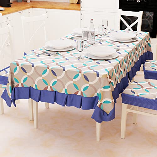 PETTI Artigiani Italienska - Duk, Plastifierat bordsöverdrag med volant, Bordsöverdrag Utomhus Vattentät Bomull Design Circel Blå X12-sits (140 x 240 cm) 100% Made in Italy