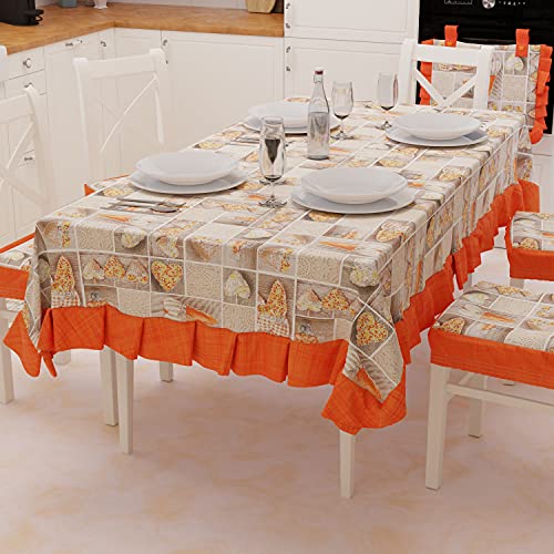 PETTI Artigiani Italienska - Duk, Plastifierat bordsöverdrag med volant, Bordsöverdrag Utomhus Vattentät Bomull Design Lidia Orange X6-sits (140 x 180 cm) 100% Made in Italy
