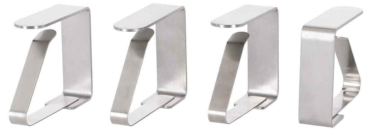 4st Stora Dukklämmor i Rostfritt Stål Anti-slip Dukhållare 10,5 * 7 Cm Dukklämmor för Utomhusbord, Dukklämmor för Tjockt Bord 7 Cm, Stort Bord