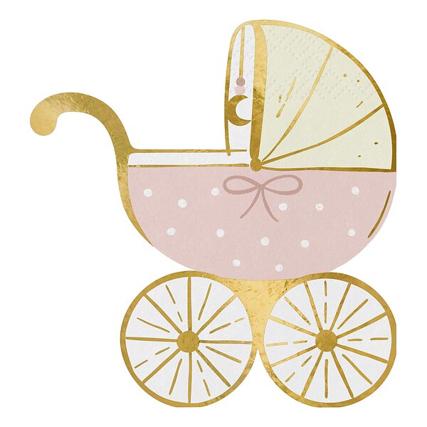 PartyDeco Servetter Barnvagn Rosa 20-pack