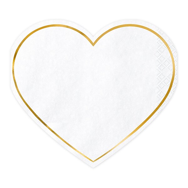 PartyDeco Vita Servetter Hjärtformade Guldkant 20-pack