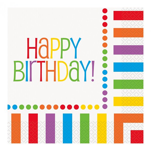 Unique Party Servetter Happy Birthday Rainbow 16-pack