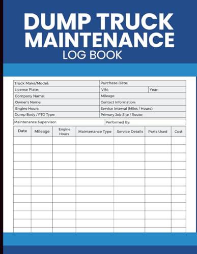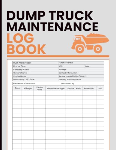 Dump Truck Maintenance Log Book: Track Mileage, Engine Hours, Service History, and Repairs for Commercial Hauling Vehicles