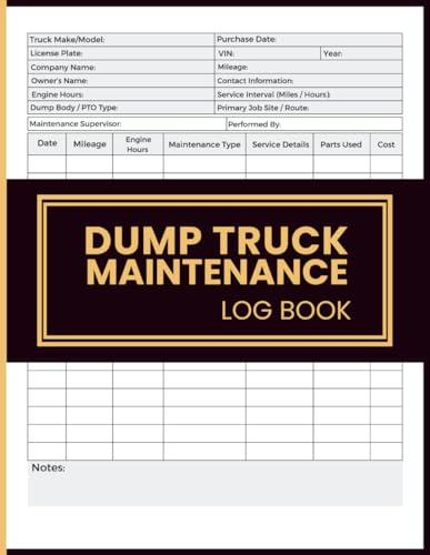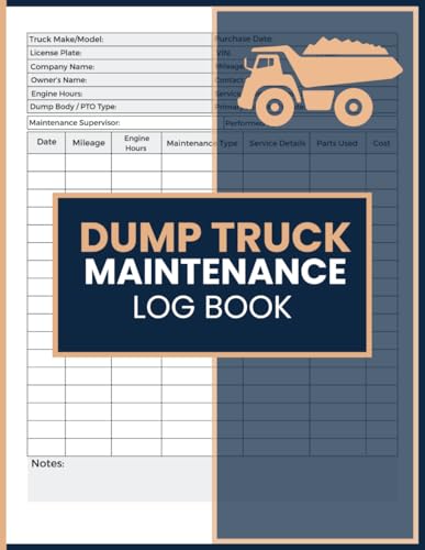 Dump Truck Maintenance Log Book: Service Record Journal for Tracking Mileage, Engine Hours, Repairs, and Performance