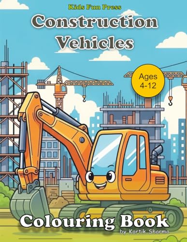 Construction Vehicles Coloring Book for Kids: Excavator, Bulldozer, Dump Truck, Crane, Ages 4-12