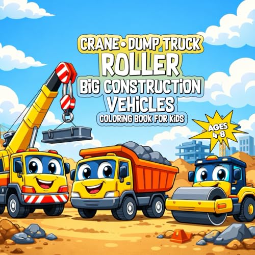 CRANE DUMP TRUCK ROLLER: Big Construction Vehicles | Fun Coloring Book for Kids Ages 4-8
