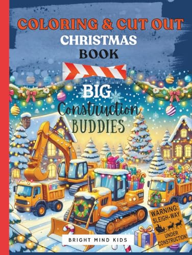 Coloring book for kids | Christmas COLORING and CUT OUT Book BIG Construction Buddies: excavator digger crane bulldozer dump truck christmas ornaments