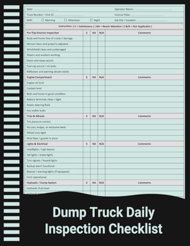 Dump Truck Daily Inspection Checklist: Pre-Trip Safety & Maintenance Log for Construction, Mining, and Hauling Operators.