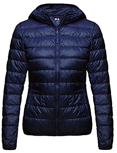 Wantdo Dunjackor för kvinnor vinter vindtäta varma rockar packbara lätta jackor isolerade buffertrockar utomhusjacka huva slim fit jackor, Marinblå, XXL