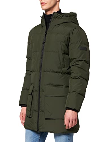 Marc O'Polo herr 70336, quiltad kappa med dunfjäderfyllning, herrvinterrock av vattenavvisande material, dunrock i buffertstil, Grön (grön 428), M