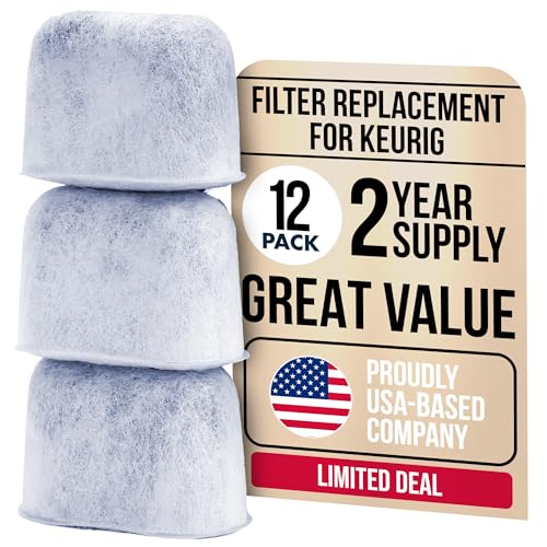 PureHQ 12-pack Keurig filter ersättning – universal passform kol kaffefilter för Keurig 2.0, K Supreme, K-Slim, K-Duo och Ninja kaffebryggare