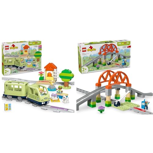 LEGO DUPLO Interactive Adventure Train + Train Bridge and Tracks Expansion Set Educational Toddler Learning Toy 10427 + 10426