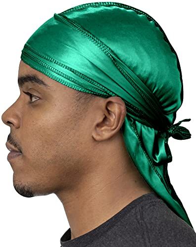 Veeta Superior Silk Durag - Smooth Silk Durag for Men & Women, Long Double Wide Straps, Outside Seam Triple Stitch Du Rag (Money Green)