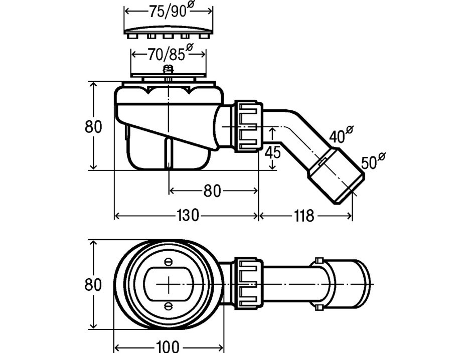 Avlopp För Badkar/Dusch 75 X 40/50 Mm