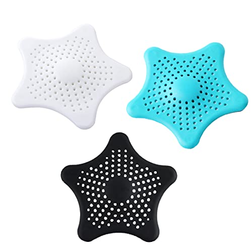 VIVIIHOO 3 stycken silikondräneringsfilter sjöstjärna hårfilter hårfångare anti-igensättning enhet badrum diskbänk filter dräneringsfilter för dusch, badkar, handfat och kök (vit, svart, blå)