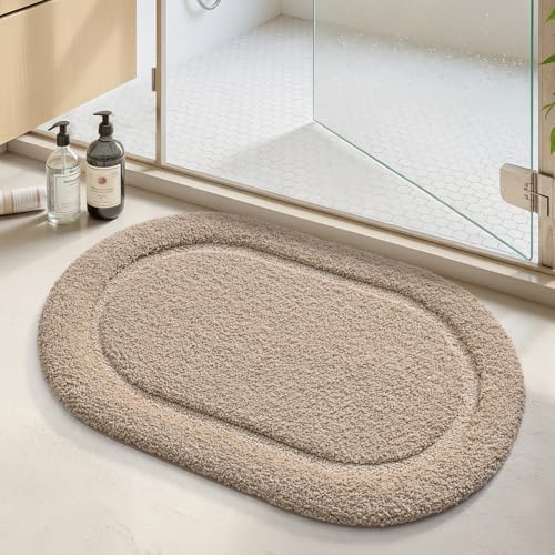 COLOR&GEOMETRY Badmattor Beige, Halkfri, Absorberande, Mjuk, Tvättbar, Tjock Badmatta, 24 tum x 36 tum Liten Badrumsmatta för Badgolv, Dusch, Handfat, Vanitet