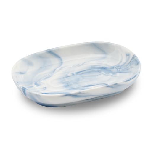 YoHyien Tvålskål i Keramik, Halkfri Tvålskål med Marmormönster för Badrum, Tvålfat, Tvålhållare för Dusch, Kök och Handfat, Håller Tvålen Torr och Enkel att Rengöra (Blå)