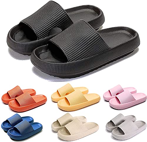Chagoo Molntofflor för kvinnor och män, snabbtorkande tofflor för badrum och dusch, Svart, 9.5/10 UK Wide