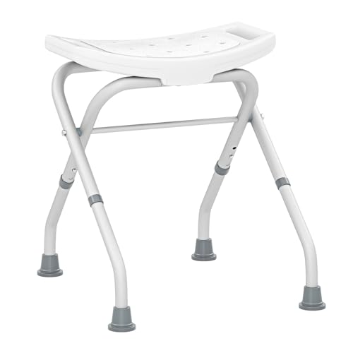 Medokare Duschstol med vadderad sits, seniorduschstol med tygväska, duschbänk, duschstol för vuxna med funktionshinder (White Stool)