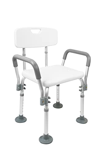 VED Duschstol | 6 justerbar duschbänk | Inkluderar vadderat armstöd | Halkfria fötter | Badkarspall för äldre, funktionshindrade och gravida | 150 kg kapacitet