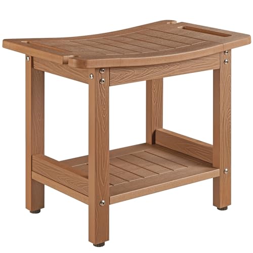 COSTWAY BA7863CFDE Duschbänk, badrum, sittbänk med hylla som kan belastas upp till 150 kg, vattentät badrumsbänk, duschstol, för vuxna, brun + vit (43 x 32 x 47 cm)