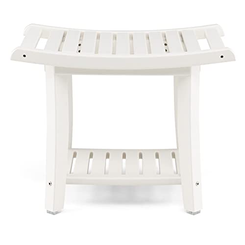 COSTWAY Duschbänk, badrum, badrumspall, vattentät med handtag och hylla, duschpall 150 kg, badstöd, duschstol, halkfri för seniorer, 41 x 31,5 x 43,5 cm, vit