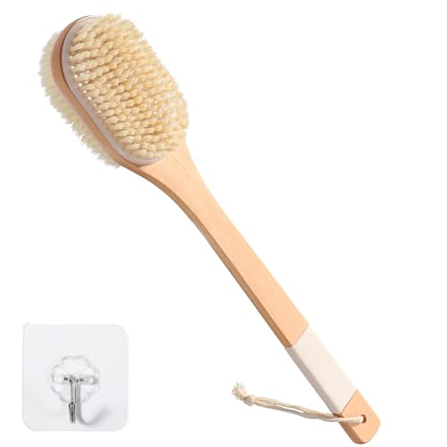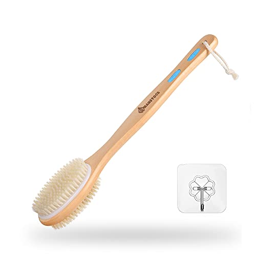 Hanstock Ryggskrubbare, 43 cm långt trä dubbelsidig duschborste med mjuka och styva borst för exfolierande hud