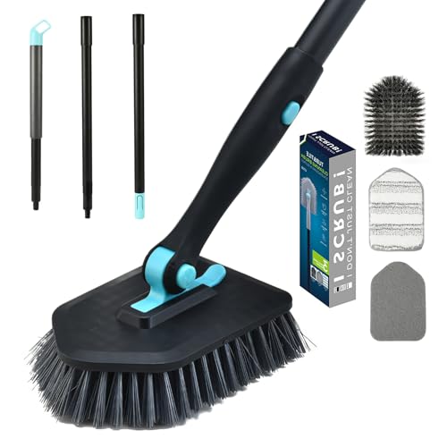 Myiosus skrubber med handtag, 2-i-1-rengöringsborste badrum med 118 cm långt handtag, golvskrubbborste med 3 utbytbara borsthuvuden, duschborste skrubborste för badrum, kök, golv, glas, kakel