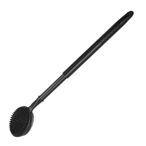Wiseten Kroppsskrubbare i silikon, kroppsborste med 40 – 60 cm långt infällbart handtag, dubbelsidig duschborste för dusch exfoliering och massage kan producera rikt skum för män kvinnor