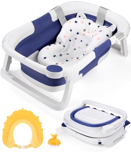 Babybadkar fällbart babybadkar babybadkar bärbart fällbart badkar (blå), levereras med badkudde, duschmössa, duschborste, lämplig för nyfödda