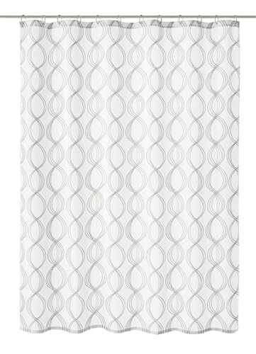 Spirella Kos silver metallisk effekt textil polyester duschdraperi, 120 x 200 cm, vit/silver