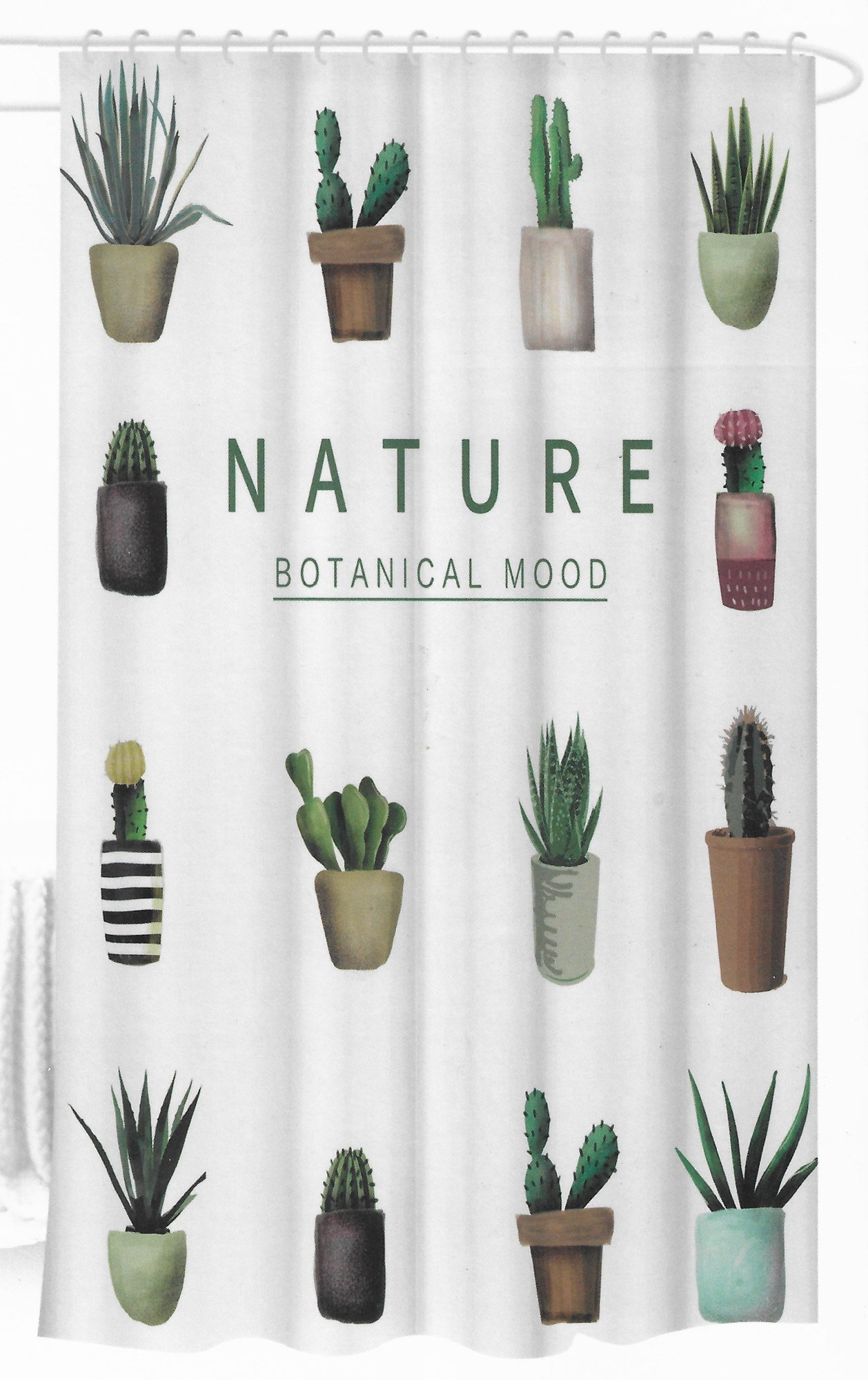 Spirella bambu grön textil polyester duschdraperi, 180 x 180 cm, vit/grön