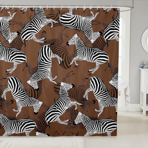 Luowenji Zebra duschdraperier badrum duschdraperi 180 x 220 cm 3D djur anti-mögel vattentätt tyg med krokar duschdraperi för vått badkar 1432D
