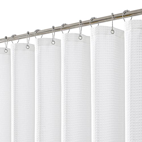 meioro vit duschdraperi, antimögel vattentät och torkar snabbt duschdraperier, våffla tungt tyg duschdraperi med 12 ringar, 180 x 240 cm lyxig duschrullgardin för badkar